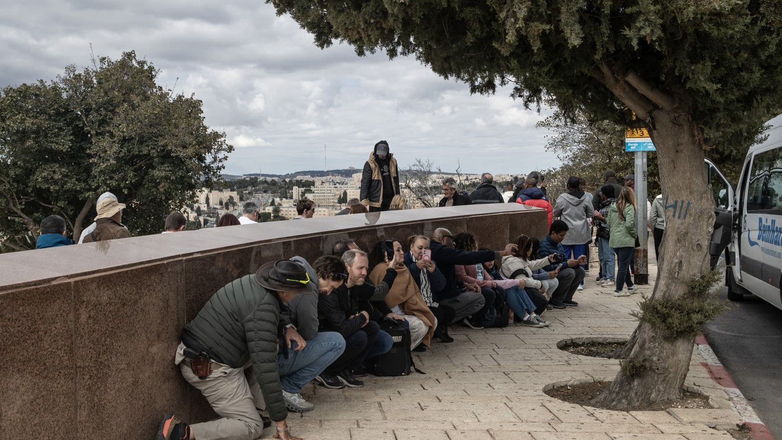 2026-03-01 09:48:39 JERUSALEM - FEBRUARY 28: People take cover as Iran launches missiles and drones…