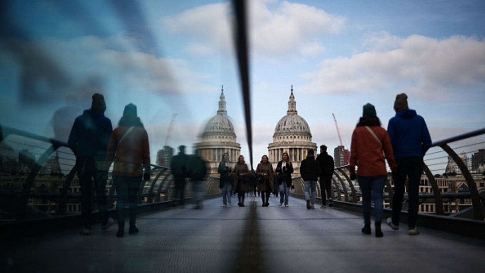 People walk on the Millennium Bridge against the backdrop of St. Paul’s Cathedral in central London on November 15, 2024.